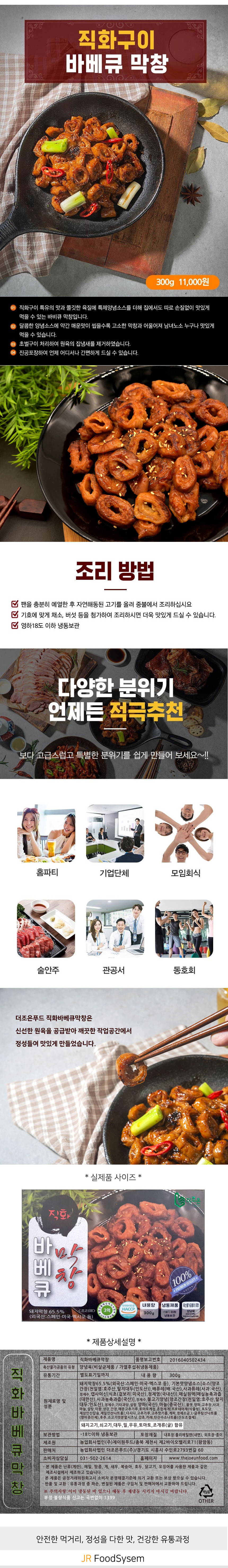 직화구이 특유의 맛과 쫄깃한 육질에 특제양념소스를 더해 집에서도 따로 손질없이 맛있게 먹을 수 있는 바비큐 막창입니다. 달콤한 양념소스에 약간 매운맛이 씹을수록 고소한 막창과 어울어져 남녀노소 누구나 맛있게 먹을 수 있습니다.